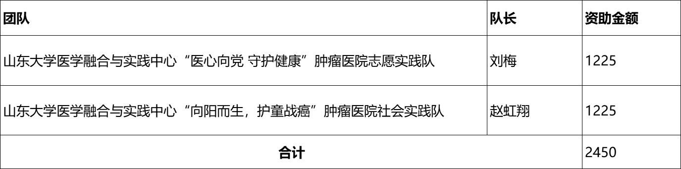 根据校团委《关于山东大学2024-2025学年学生暑期社会实践校级荣誉的结果公示及经费报销的通知》相关要求,结合医学融合与实践中心2024-2025学年社会实践开展情况和参与学生数量,确定资助额度,现公示如下: