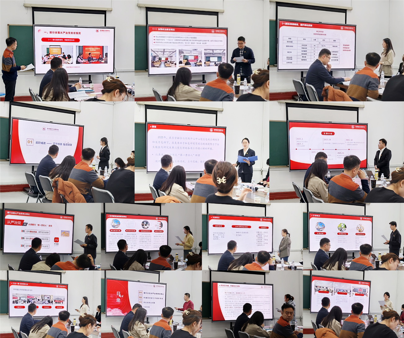 为深入学习贯彻习近平新时代中国特色社会主义思想和党的二十届四中全会精神,巩固拓展深入贯彻中央八项规定精神学习教育成果,全面总结2025年基层党建工作成效、精准查摆突出问题,2026年1月5日,医学融合与实践中心党总支在教学四楼201会议室召开2025年度党支部书记述职评议会议。基础医学院党委副书记张乃亭列席会议并指导工作,中心党总支书记王伟主持会议,中心党总支全体班子成员、各党支部书记、副书记以及部分党员代表参加会议。